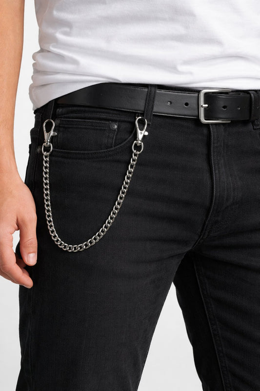 Silverfärgad byxkedja med karbinhakar