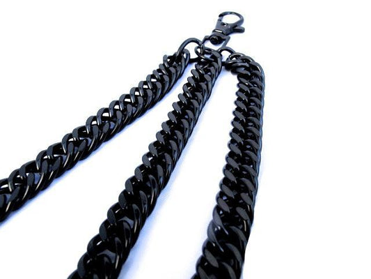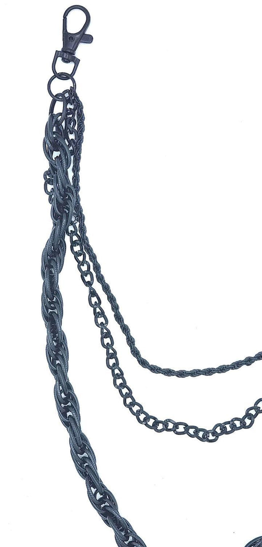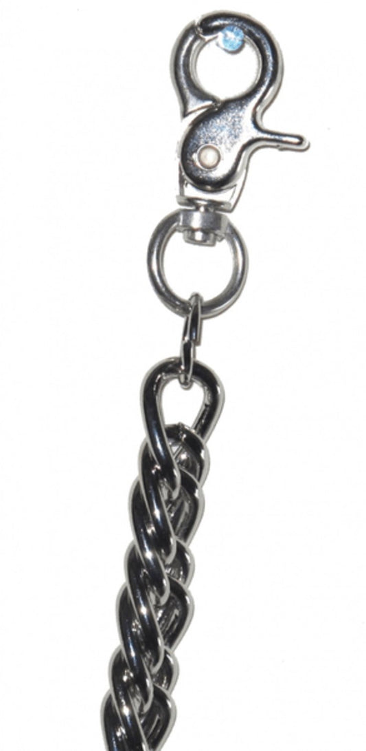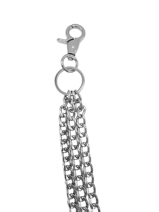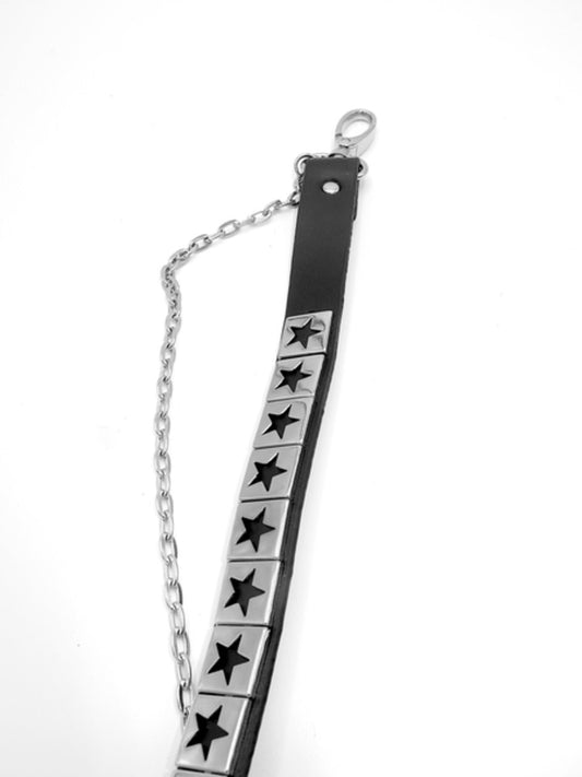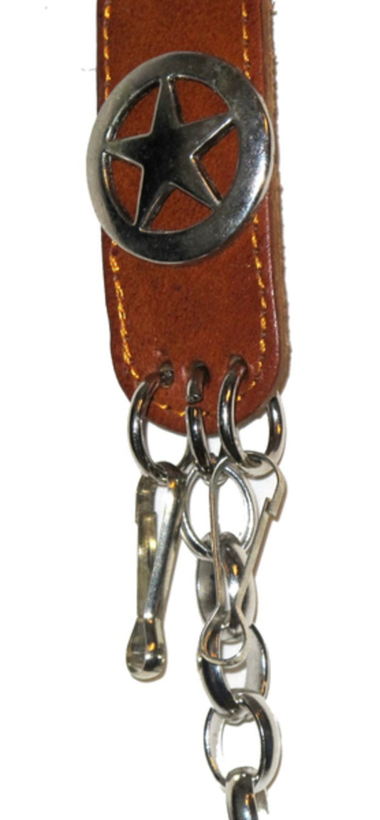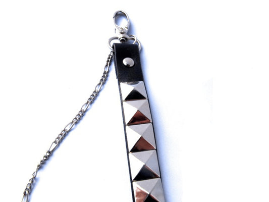 Byxkedja i läder med pyramid nitar och silverfärgad kedja