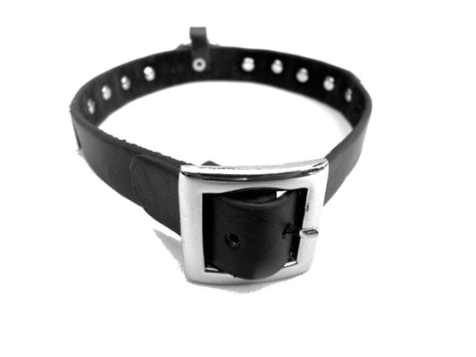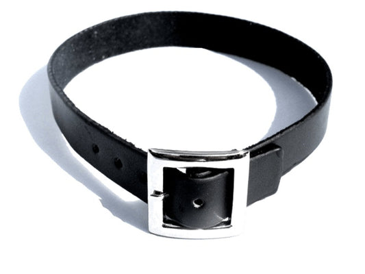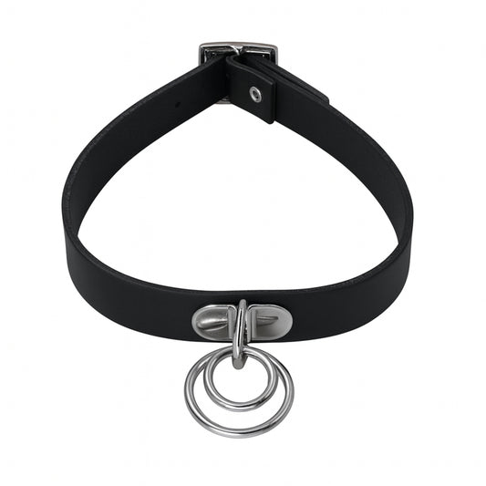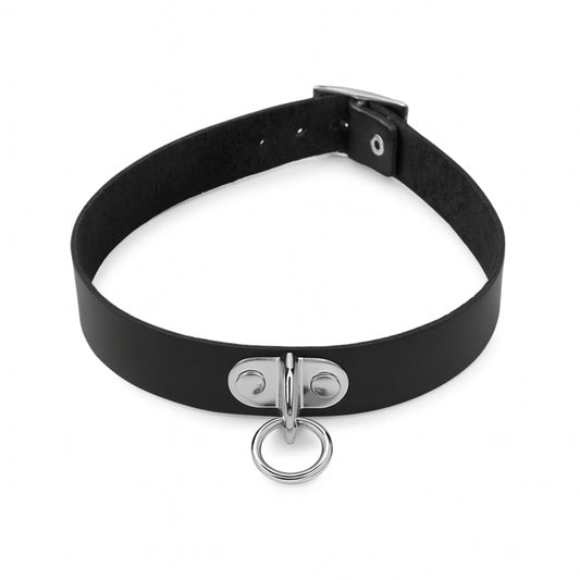 Svart halsband med prickigt tyg volang och ring - Bondage