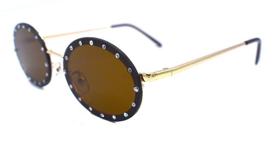 Bruna runda solglasögon med vita stenar - Ice Edition