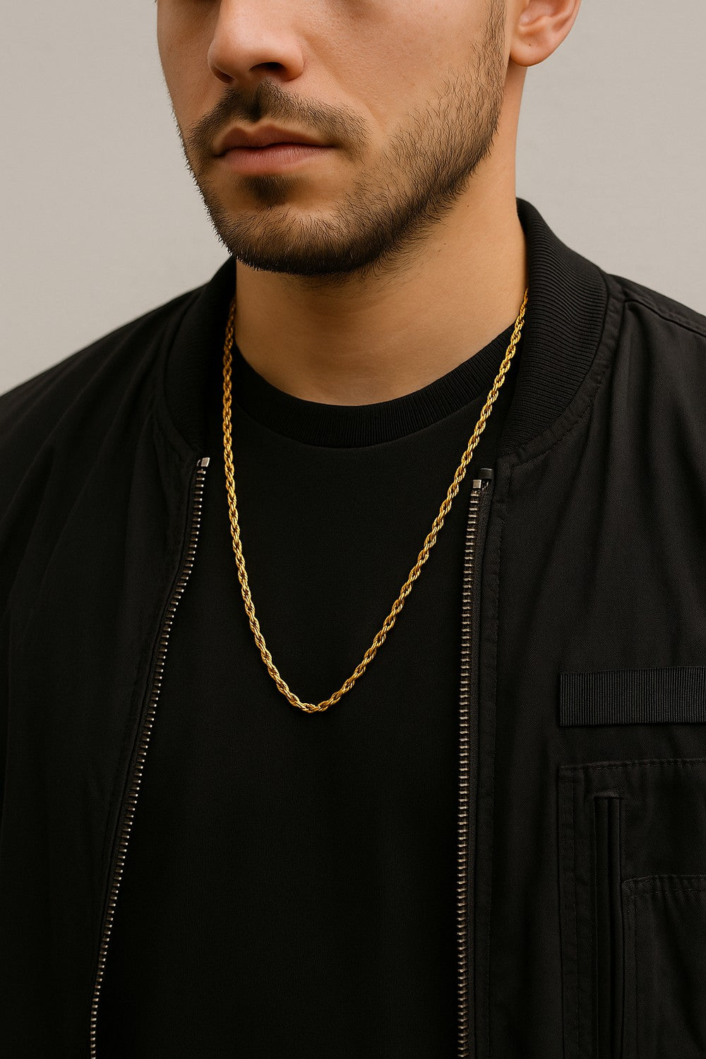 Elegant guldfärgad kedja tillverkad i rostfritt stål med klassisk repdesign. Kedjan är 70 cm lång och 0,5 cm bred – en perfekt storlek för att bäras både ensam eller med ett hänge. Tack vare materialet i rostfritt stål behåller kedjan sin glans länge och är slitstark för dagligt bruk.