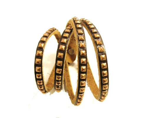 Brett svart läderarmband med täta runda nitar – Justerbart