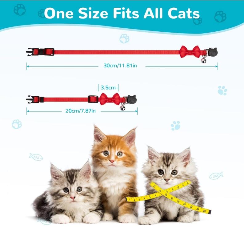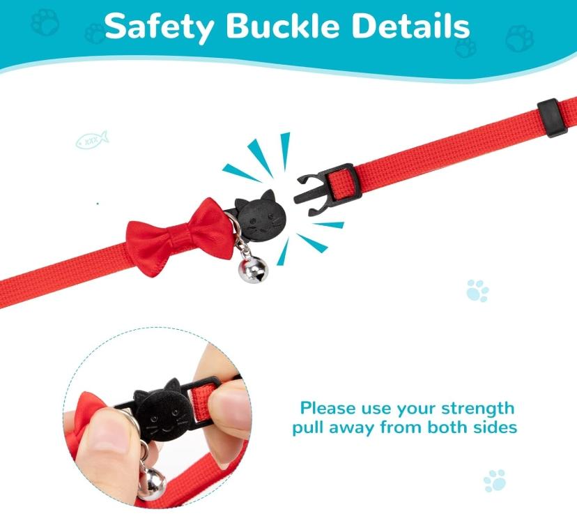 - Funktioner: Justerbar storlek och säkerhetsspänne som släpper vid tryck för att hålla katten trygg