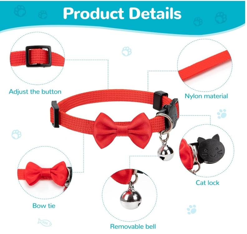 Röd Söta Katt-Halsband med Fluga och Bjällra - Justerbara och Bekväma