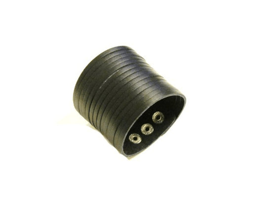 Musta keinonahkainen rannekoru, jossa kaksinkertaiset soljet