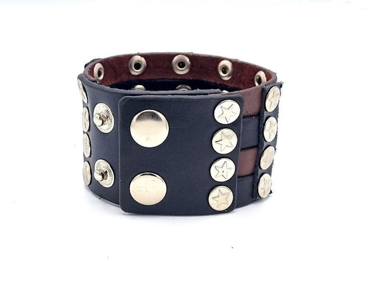 AlennusmyyntiNahkainen rannekoru tähdellä ja pyöreillä nastoilla