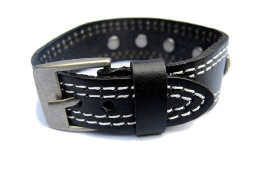 AlennusmyyntiMusta nahkainen rannekoru nappeilla