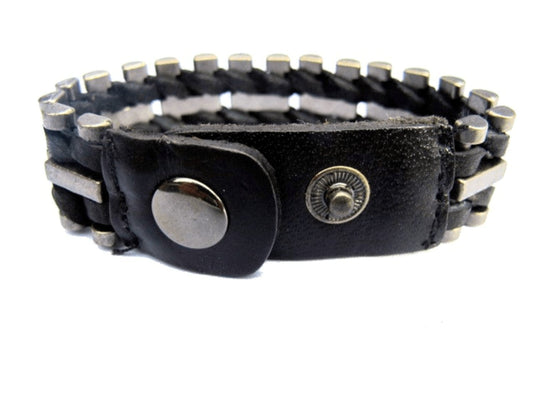 AlennusmyyntiMusta nahkainen rannekoru teräksellä