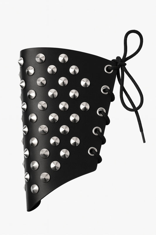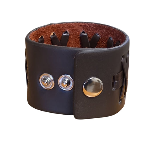 AlennusmyyntiSvart Läderarmband med Spetsnitar & Snörning