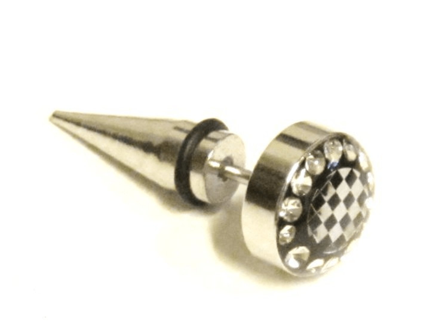 Supersnygg "fake" plugg med motiv på platta fram och spets bakåt! Ser ut som att man har en tjock spik rakt genom örat!