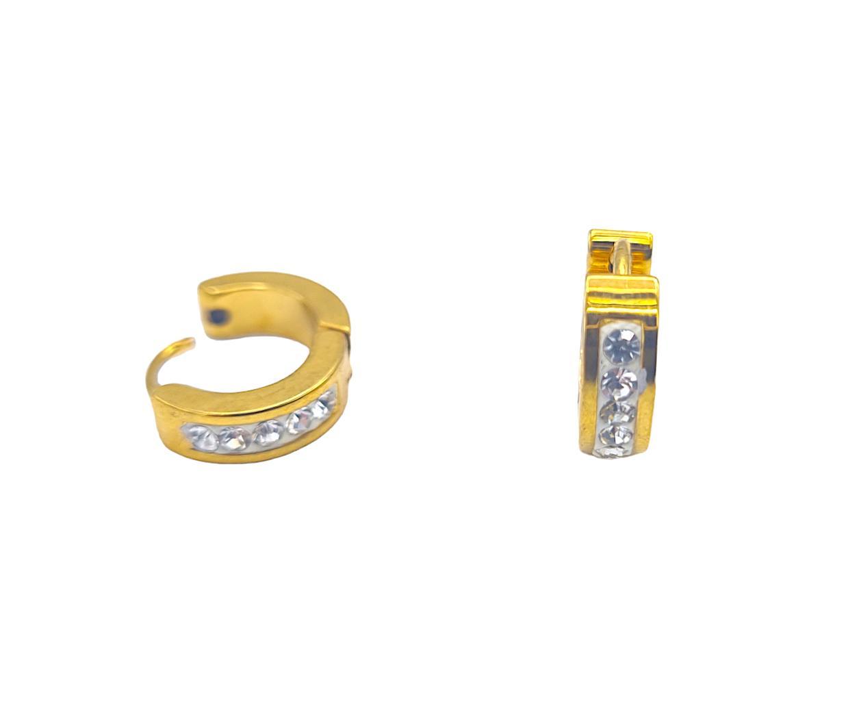Guldfärgade stålörhängen med vita stenar