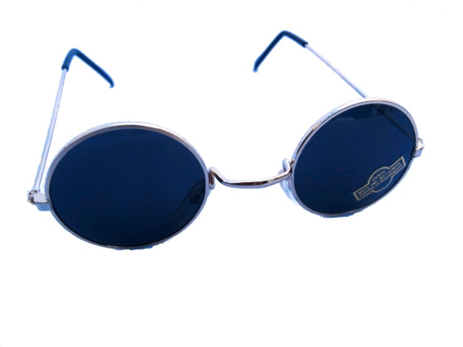 Klassiska runda solglasögon - Mörka med silverfärgade bågar