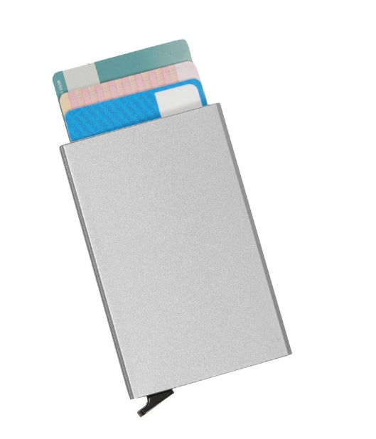 Det hårda aluminiumskalet ger effektivt skydd mot böjning, repor och RFID-skimming, så dina betalkort och identitetskort är säkra mot obehörig avläsning.