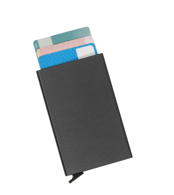 Håll dina kort organiserade och skyddade med denna eleganta korthållare i slitstark aluminium. Den är designad för att vara ultratunn och lätt, vilket gör den perfekt för fickan utan att skapa bulk. Med ett enkelt knapptryck glider korten upp i en fläktform för snabb och smidig åtkomst.