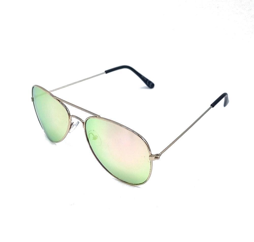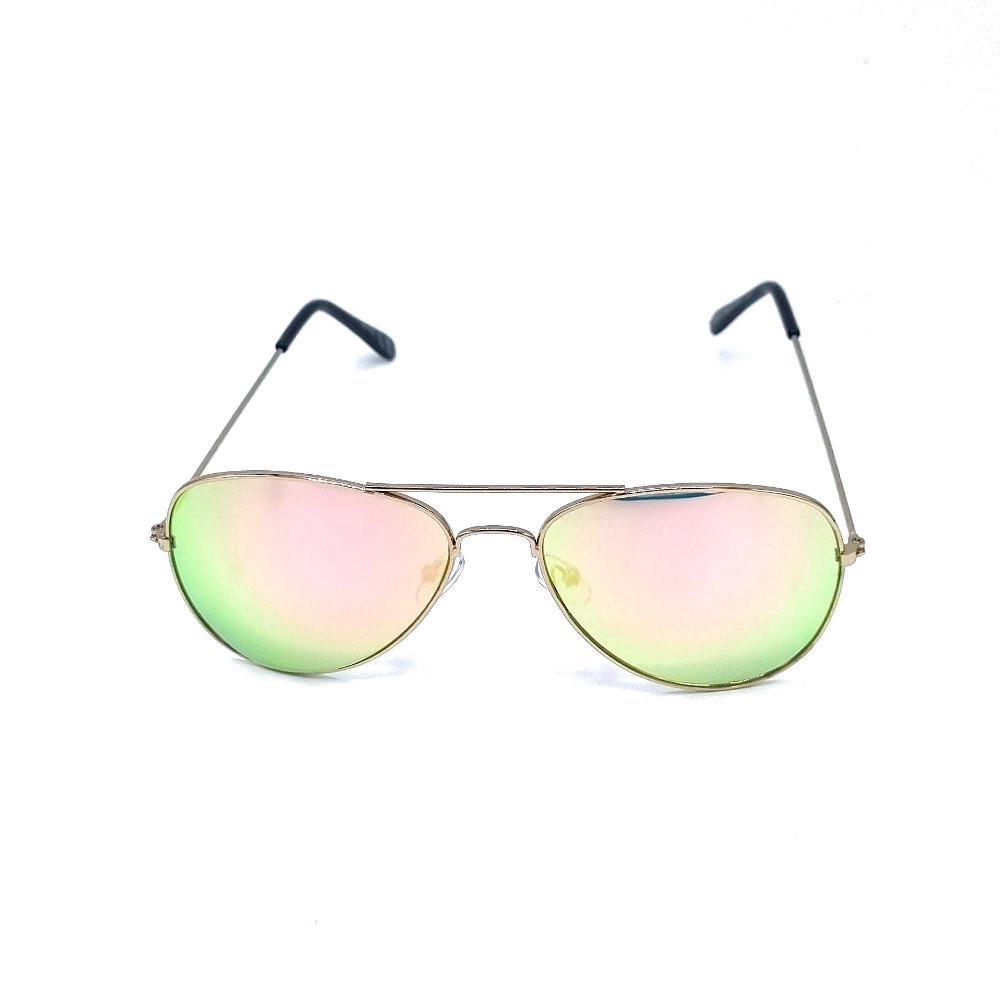 En klassisk vinklad, ovalformad båge med böjda kanter och en stor lins. Bågarna är av nickelfritt stål och färgade i silver med en grön/rosa lins.Var både trendig och skydda dina ögon samtidigt med dessa solglasögon. Denna modell är UV400-säkrad vilket innebär att den skyddar mot UV-ljus.