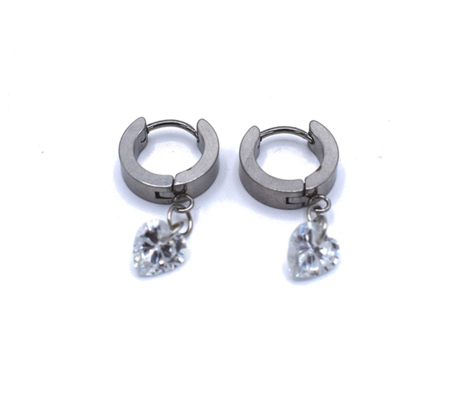 Silverfärgad örhängen med vit kristall i form av hjärta.