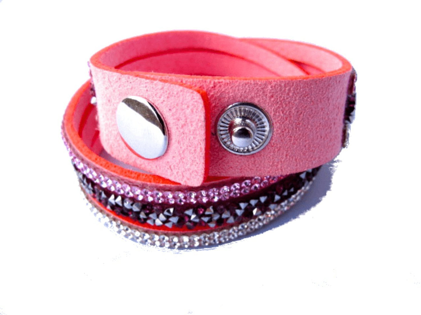 Rosa dubbel snittat läderarmband med Kristaller
