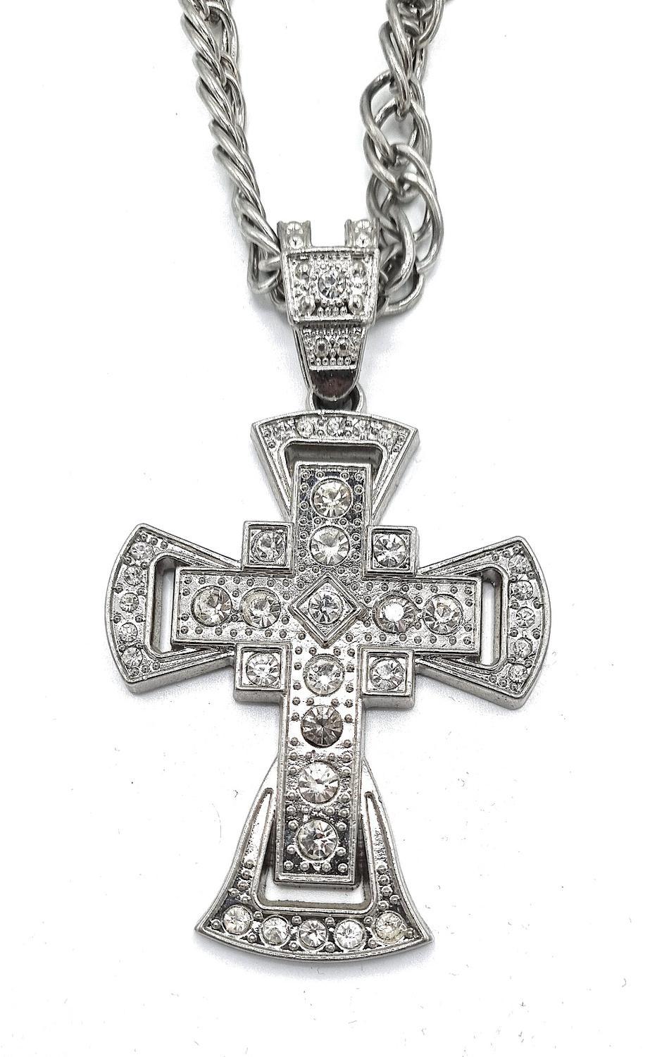 Silverfärgat Hiphop halsband, smycke i form av en kors med hand monterade kristaller