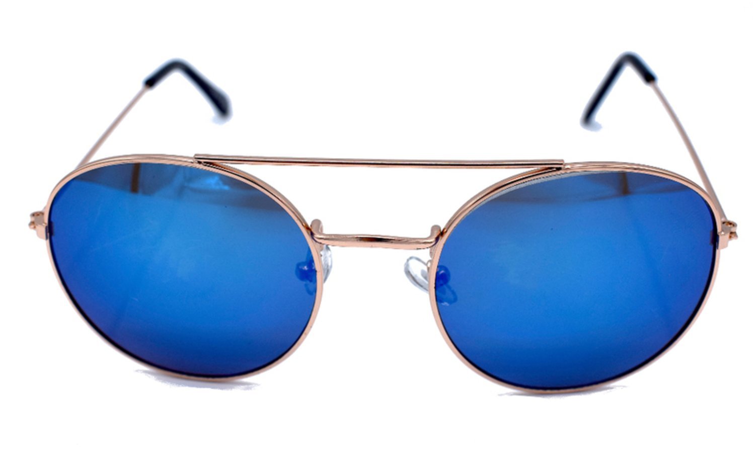 Solglasögon med guldfärgade bågar och blåa linser från märket KOST.