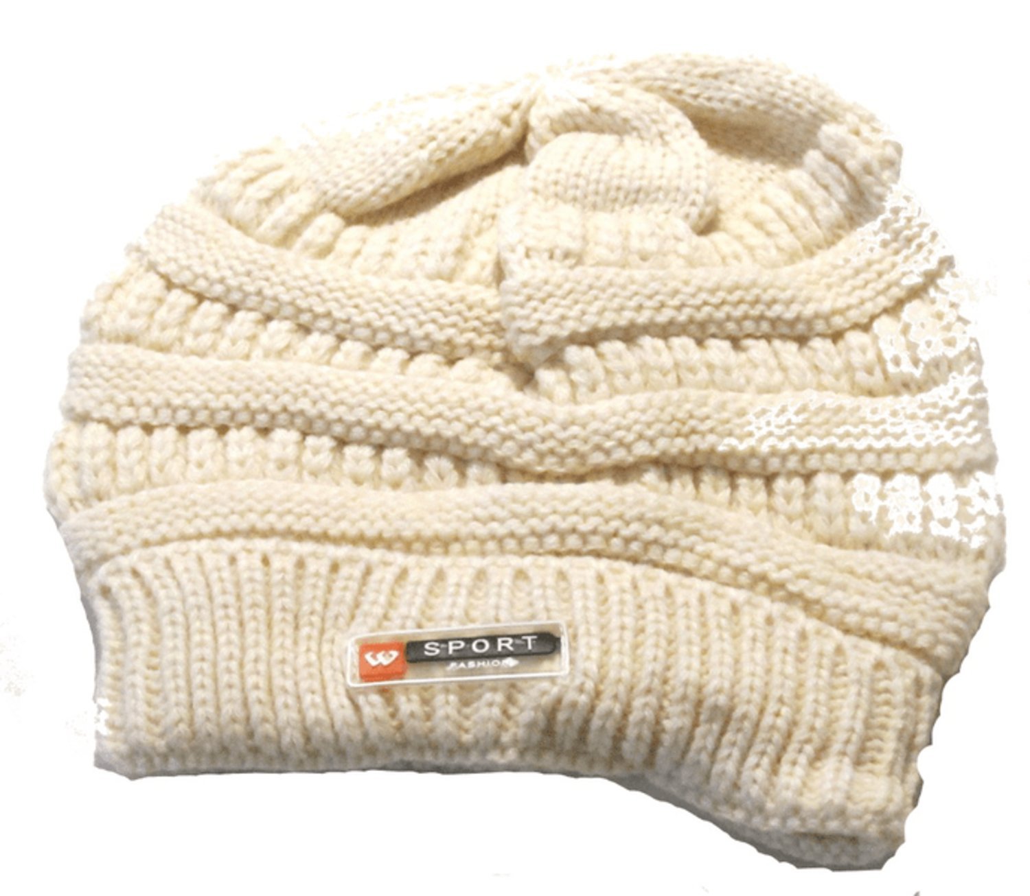Stickat mössa Beige