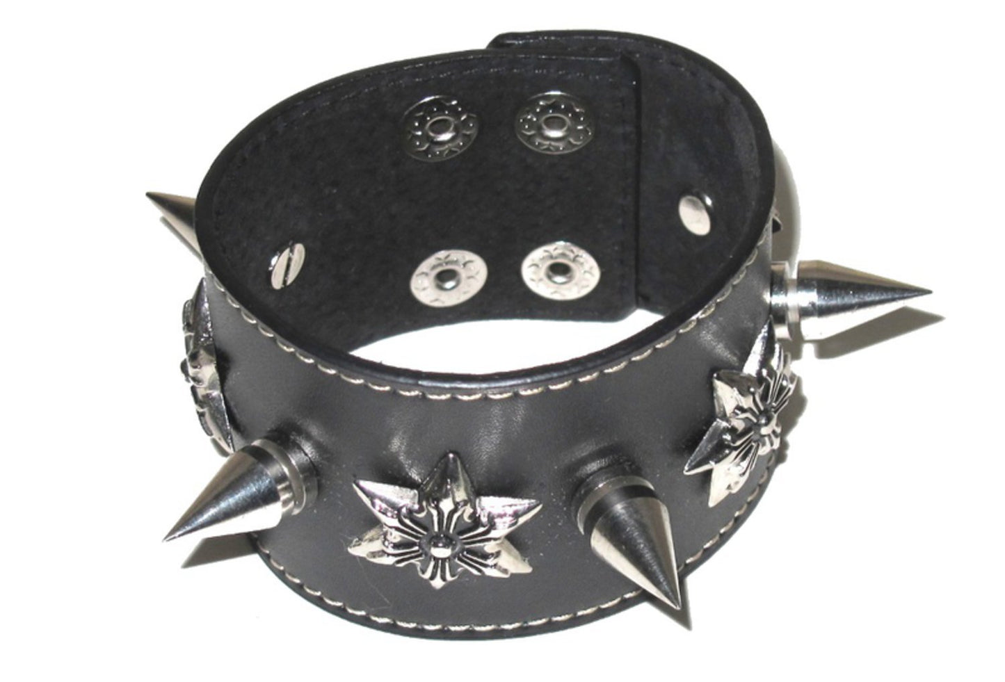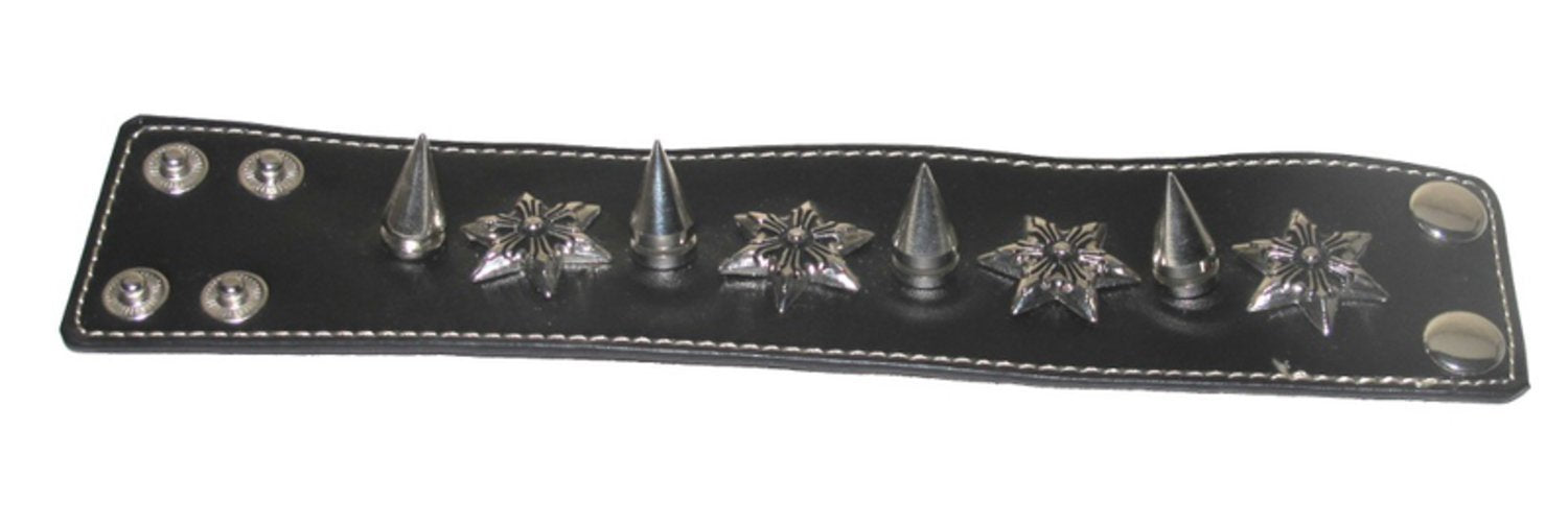 SVART ARMBAND MED SILVER NITAR OCH STJÄRNOR.
